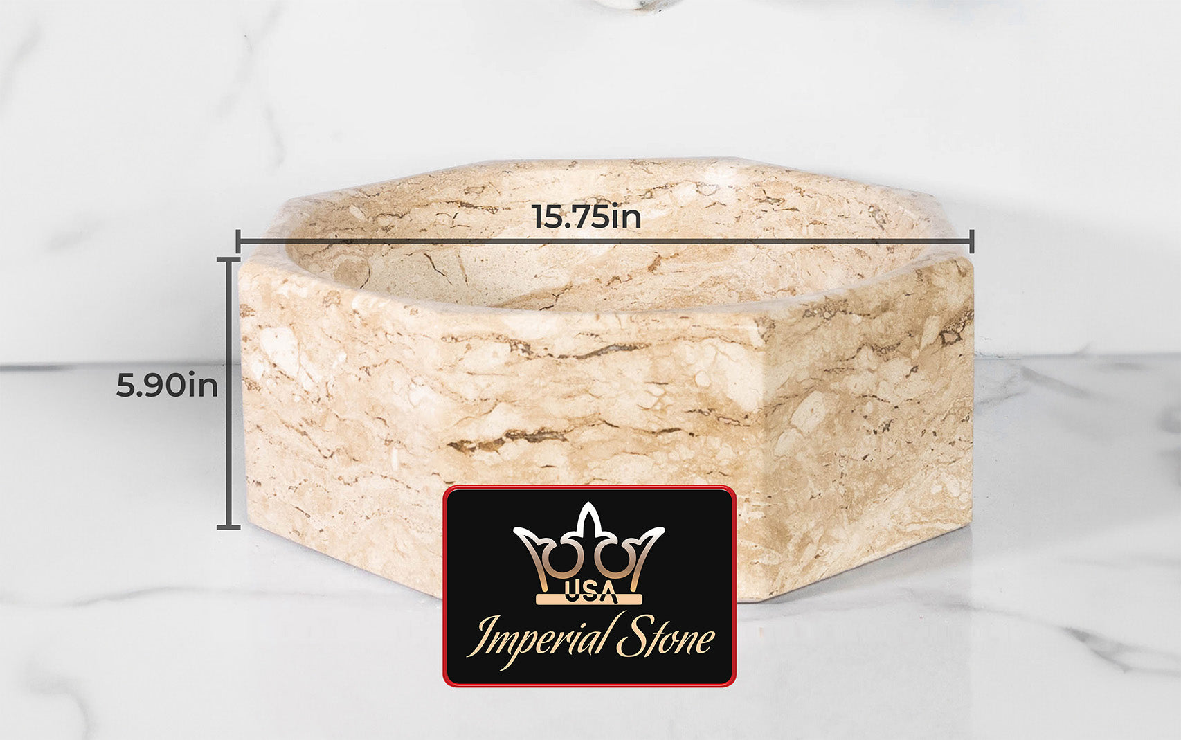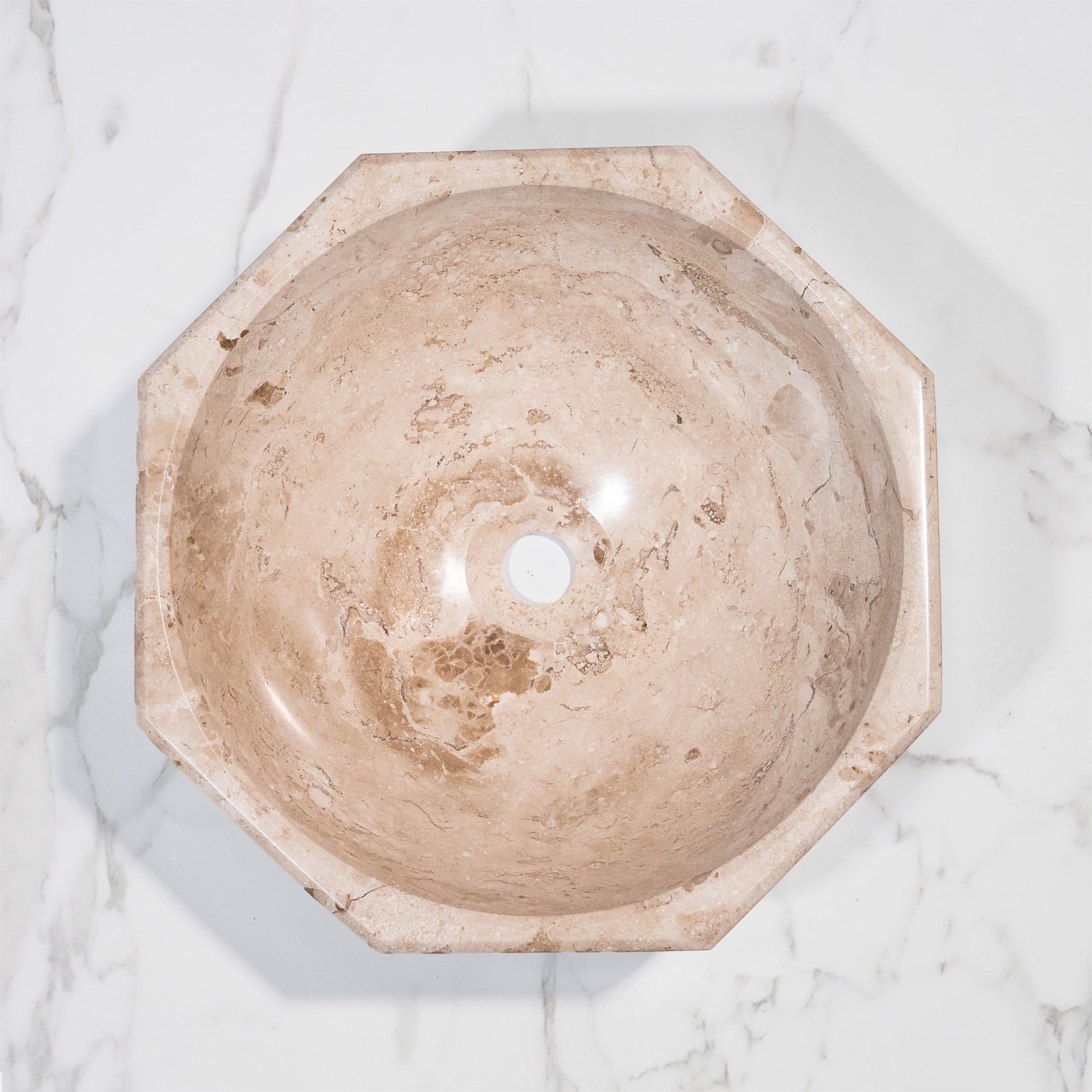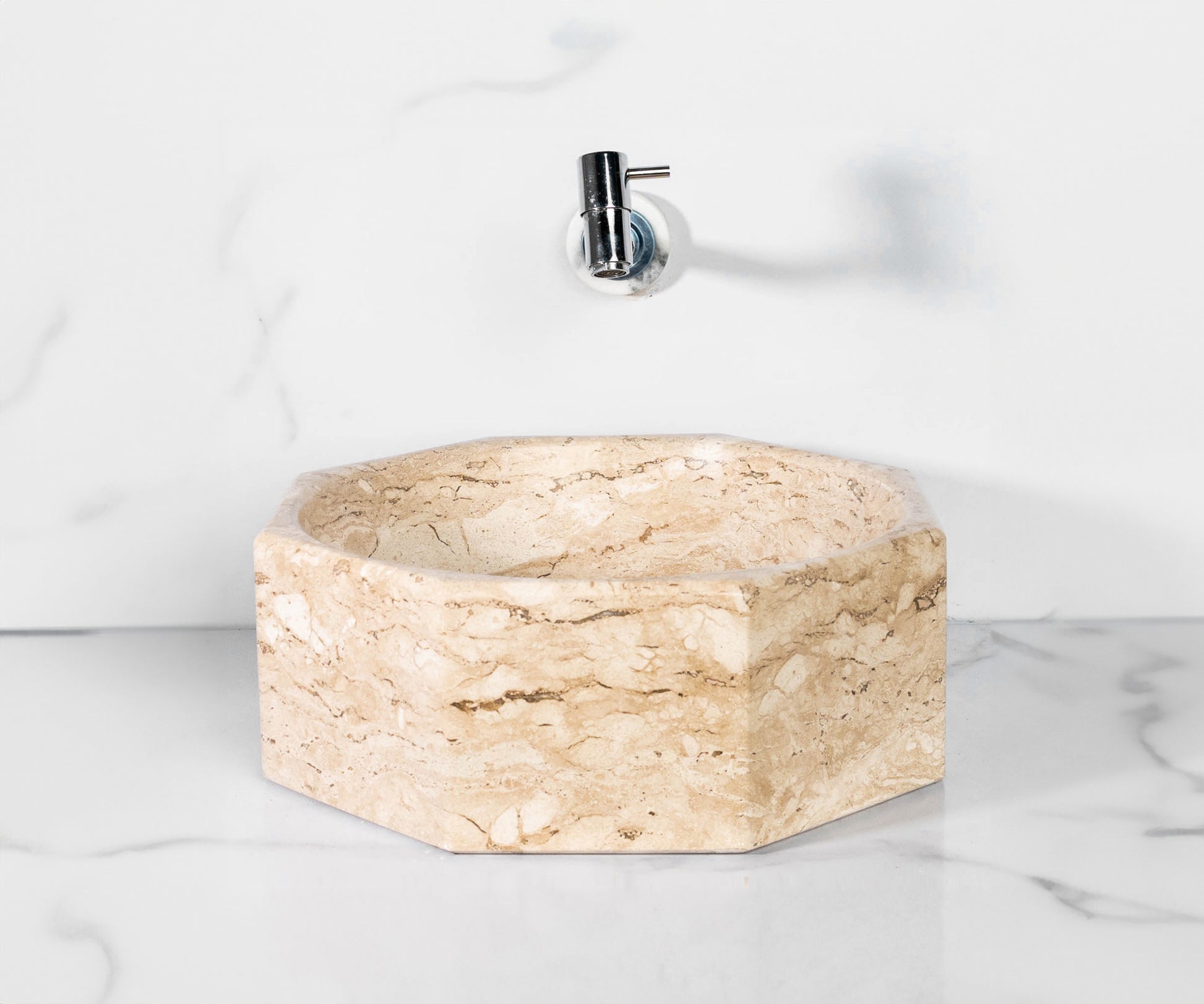 Bahia Beige Octagonal Marble Sink – with a free marble soap dispenser