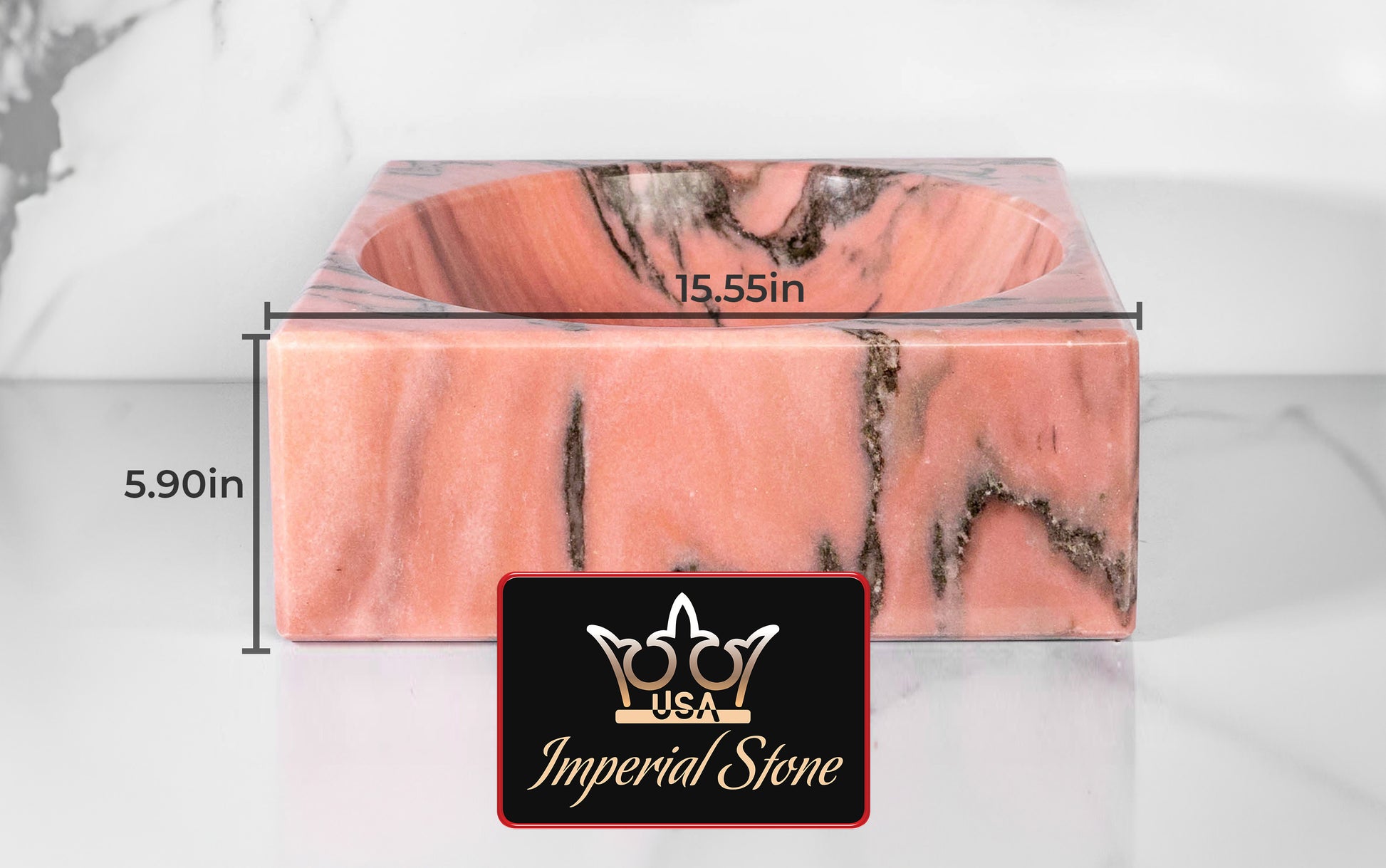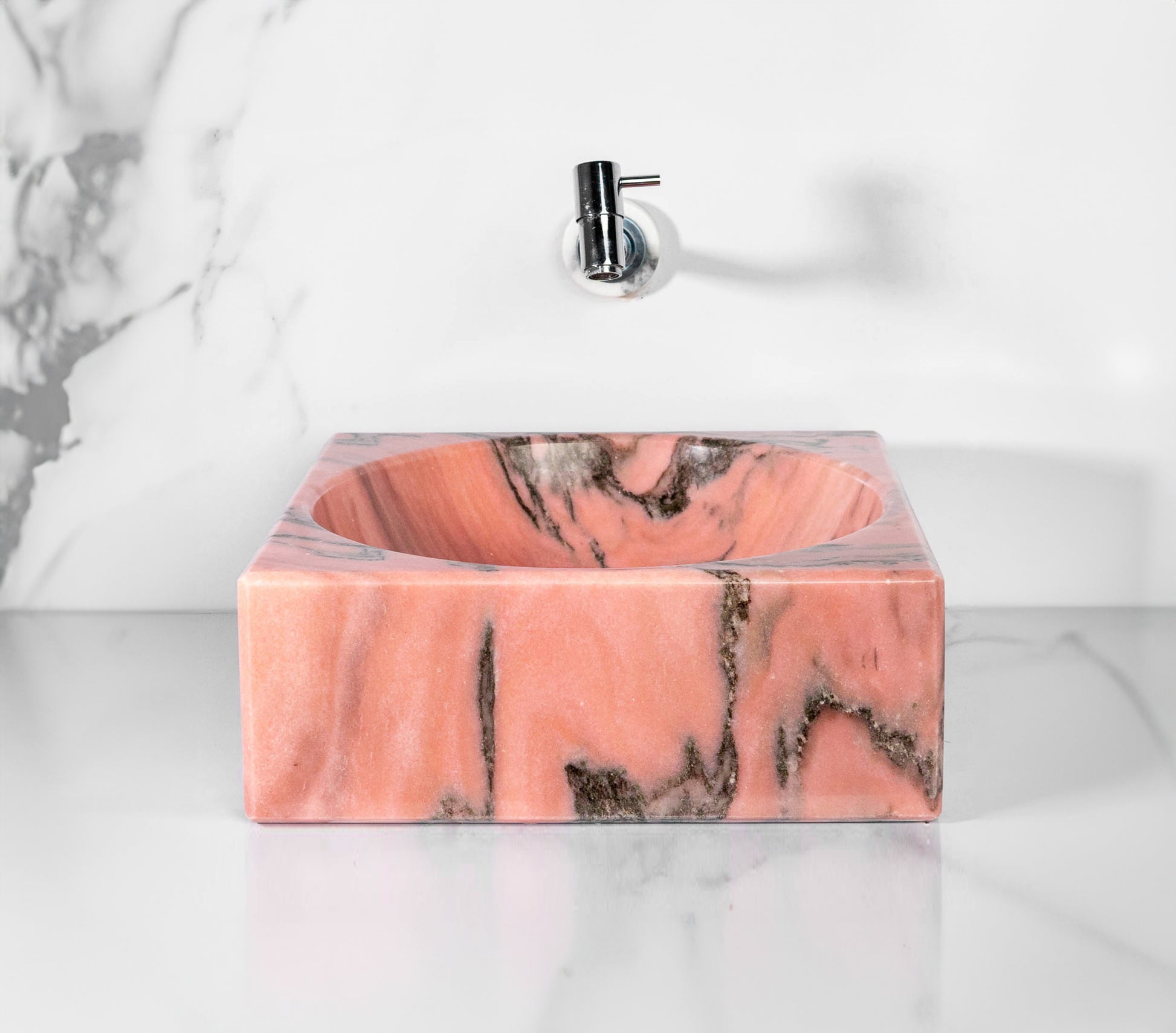 Rose Bahia Square Marble Sink – with a free marble soap dispenser